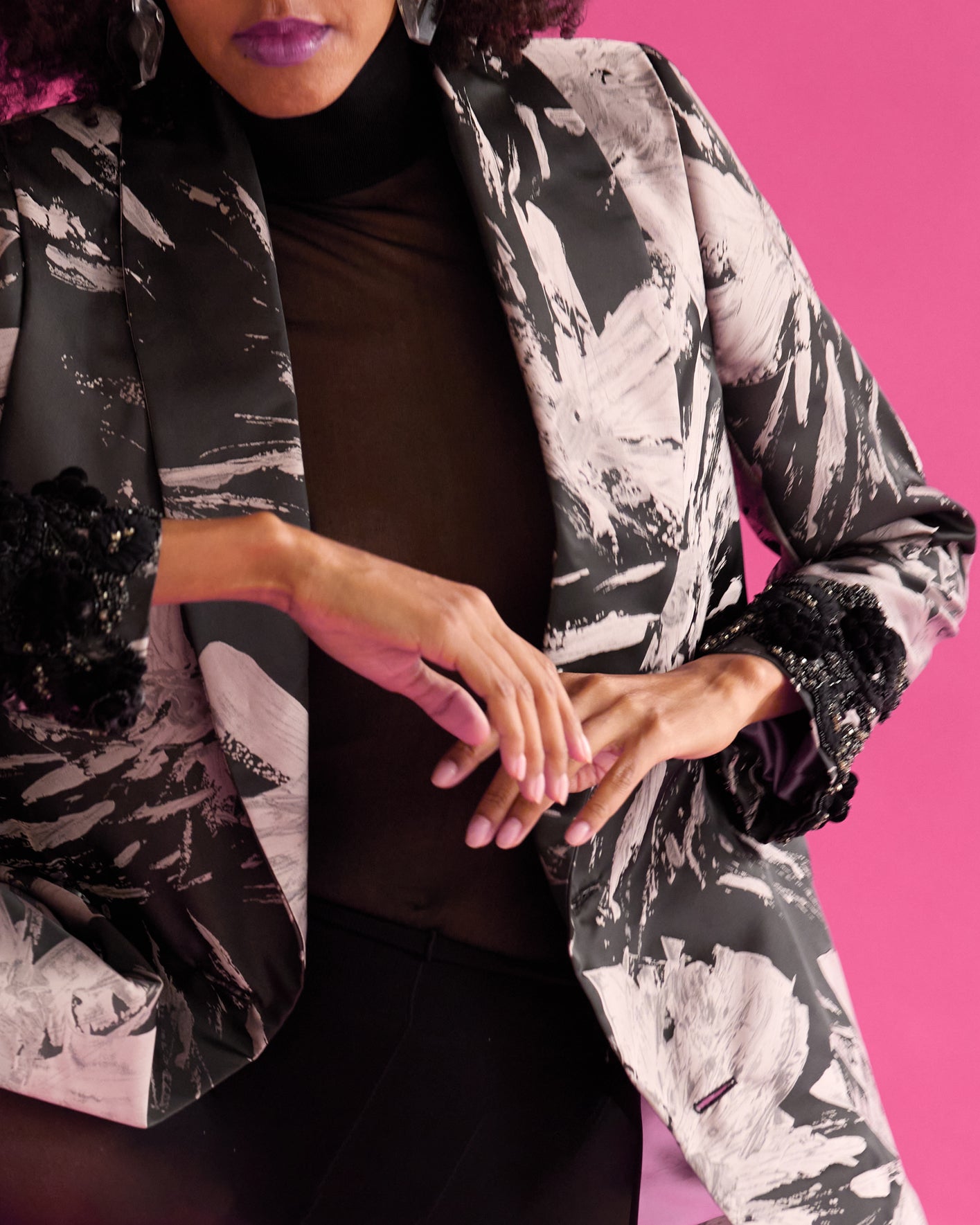Midnight is a bold play of contrasts in black and soft lilac.